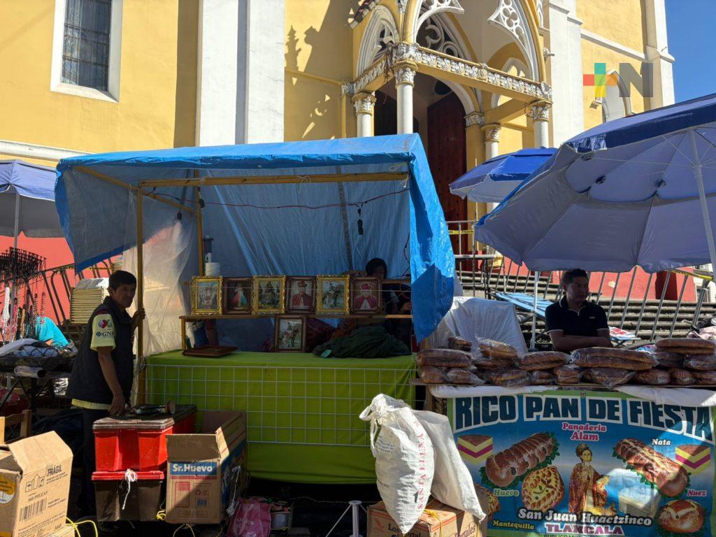 Xalapa, Ver.- Comerciantes ya se ubican en las escalinatas de la Catedral Metropolitana de Xalapa con el fin de ofrecer estampas, pan, playeras, rosarios, pulseras, cuadros de imágenes religiosas para feligreses que visitarán este espacio y celebrar a San Rafael Guízar y Valencia.