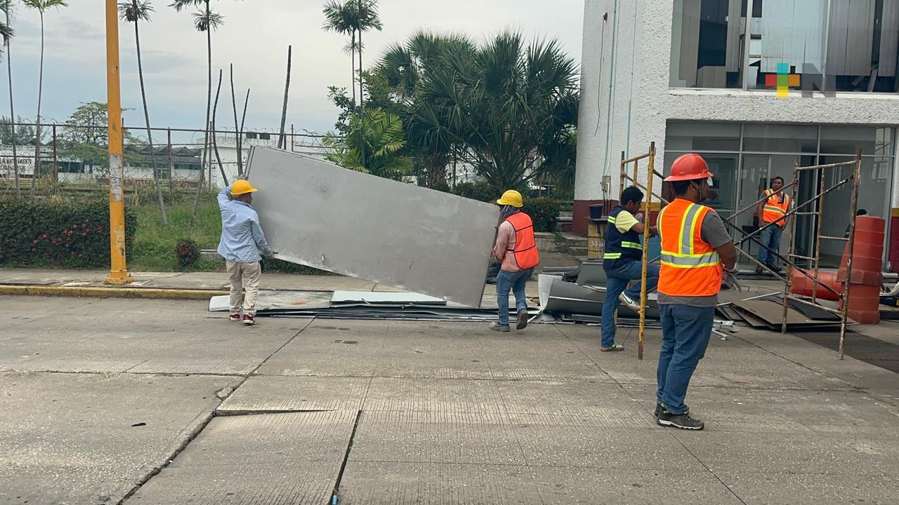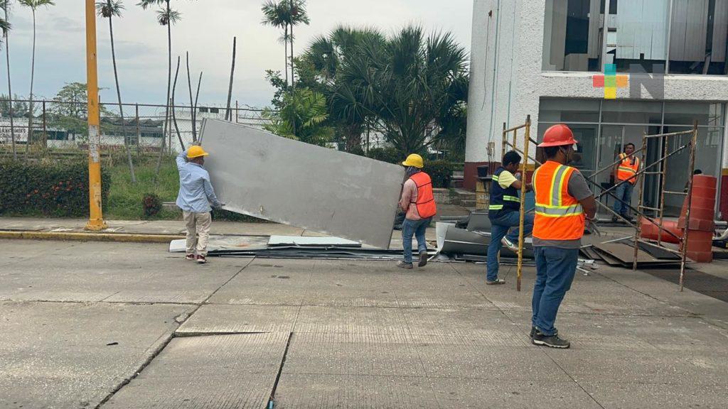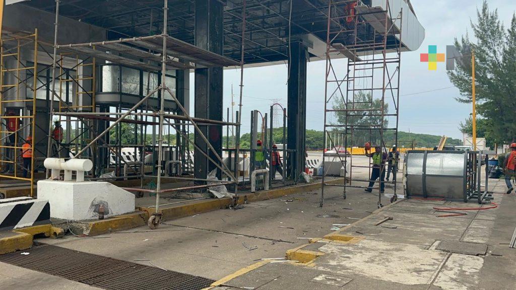 En una primera etapa se inició con el retiro del recubrimiento metálico de la parte superior, así como las casetas de cobro en tres carriles con dirección a Coatzacoalcos.
