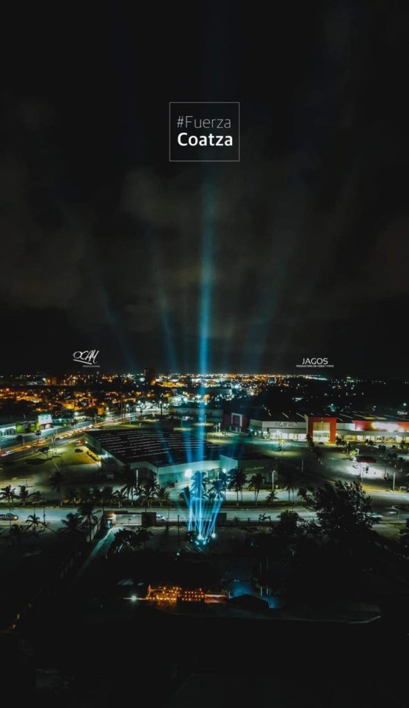 Como símbolo de esperanza, estela de luz iluminó a Coatzacoalcos