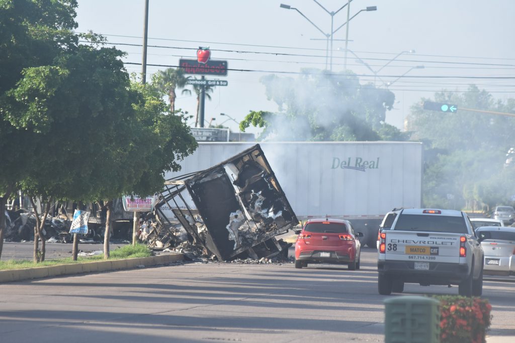 Cualiacán, Sin.- Calles vacías, comercios e industrias cerradas, chatarras de tráileres y camiones todavía humeando en cruces viales importantes, es la imagen de la mañana de este viernes en la ciudad que vivió ayer horas de terror, el cual pudo convertirse en una masacre.