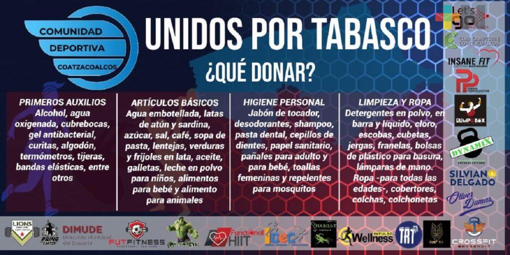 Comunidad Deportiva de Coatzacoalcos invita a población a donar insumos para afectados de Tabasco