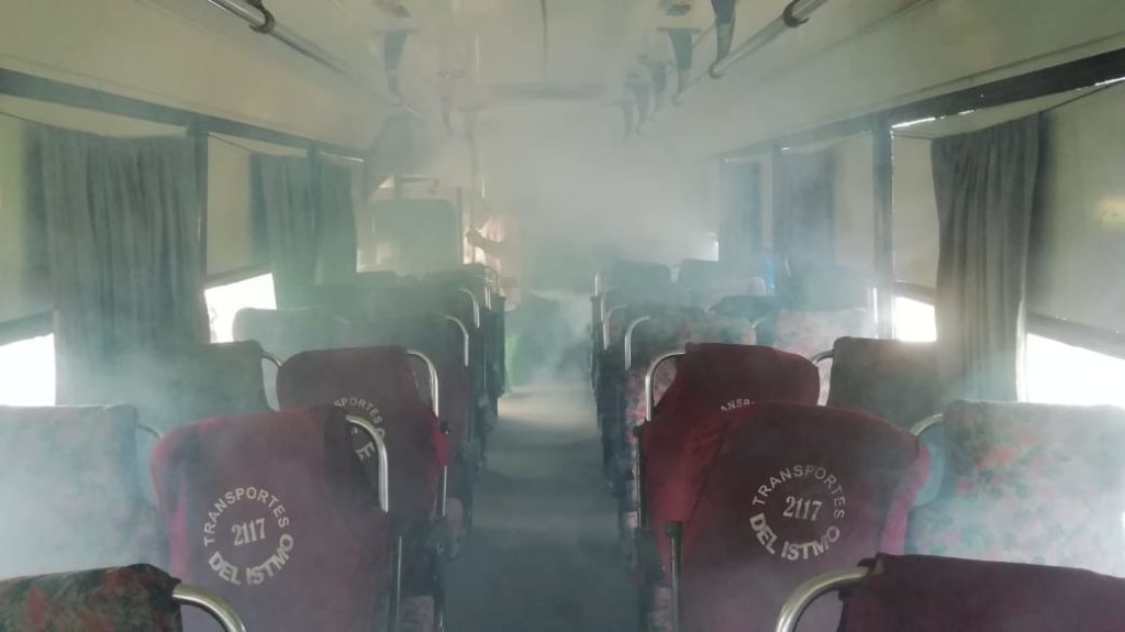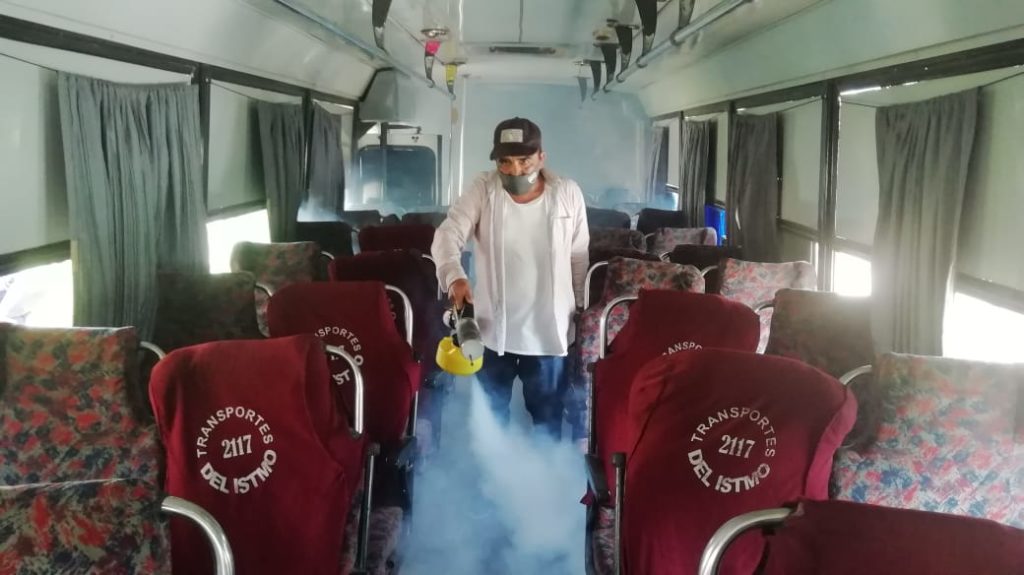 En el caso del transporte público los trabajadores del ayuntamiento ingresan a desinfectar los urbanos, mientras se entrega gel antibacterial a cada usuario.