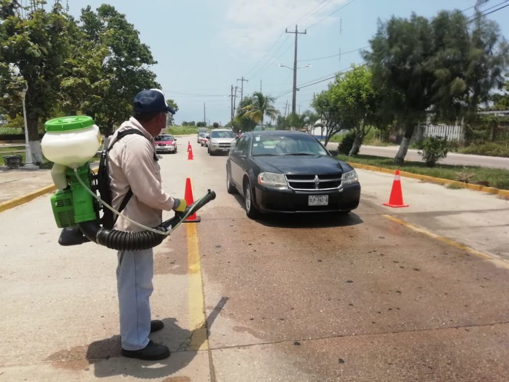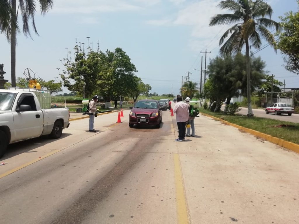 En la entrada principal al municipio se mantiene un filtro sanitario donde se sanitizan todas las unidades antes de ingresar y se toma la temperatura a los conductores y usuarios del transporte público.