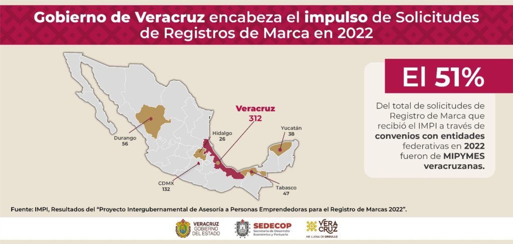 Xalapa, Ver.- Con 312 empresas inscritas, Veracruz es uno de los seis estados aliados del Proyecto Intergubernamental de Asesoría a Personas Emprendedoras para el Registro de Marcas 2022, mediante el cual la ciudadanía recibe el acompañamiento especializado del Instituto Mexicano de la Propiedad Industrial (IMPI).