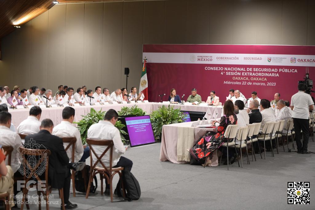Santa Lucía del Camino, Oax.- En el Centro Cultural y de Convenciones de Oaxaca, la Fiscal General del Estado, Verónica Hernández Giadáns, asistió a la 4ª Sesión Extraordinaria del Consejo Nacional de Seguridad Pública, encabezada por el Secretario de Gobernación, Adán Augusto López Hernández, con la presencia del Gobernador del Estado, Cuitláhuac García Jiménez, los integrantes del gabinete de seguridad federal, gobernadoras y gobernadores de los estados, la Jefa de Gobierno de la Ciudad de México, así como el Secretario de Seguridad Pública, Cuauhtémoc Zúñiga Bonilla.
