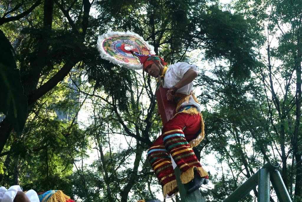 Con trajes típicos y representando a los Voladores de Papantla, jóvenes alegres dieron una muestra de nuestra cultura, arraigo e identidad que pudieron apreciar los capitalinos.
