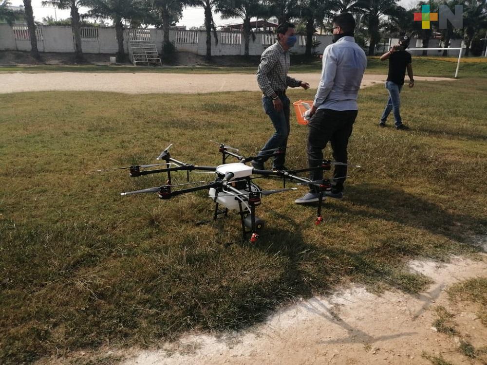 Con dron agrícola sanitizarán espacios públicos en Las Choapas