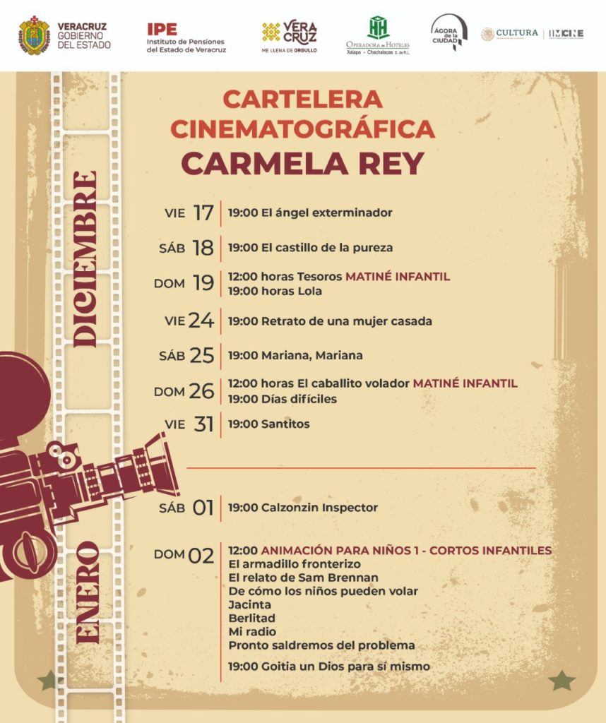 La última función del 2021 será el viernes 31 con Santitos e iniciará el 2022 con Calzonzin inspector el sábado 1 de enero y el domingo siete cortometrajes infantiles y Goitia un Dios para sí mismo.
