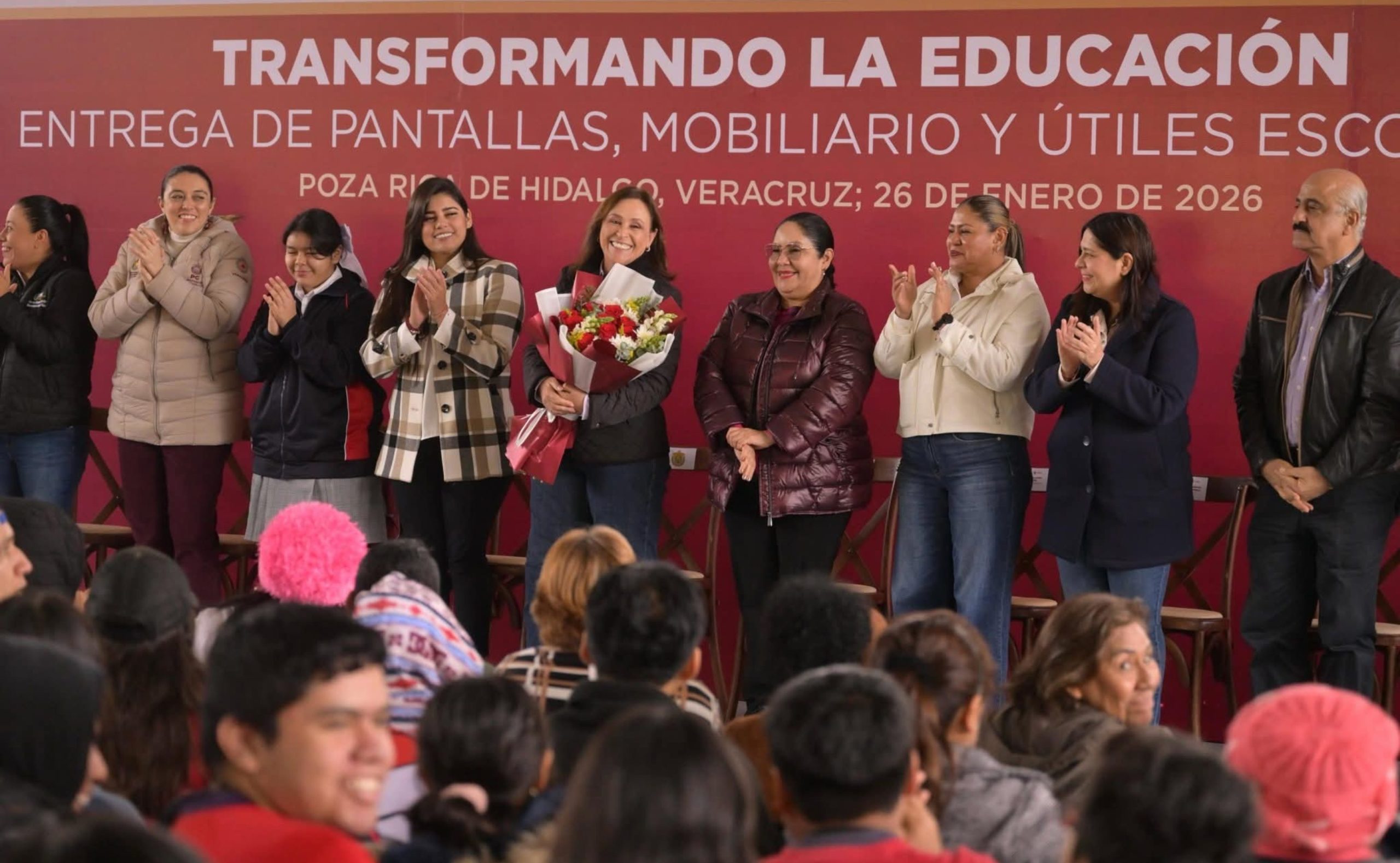 Acompañada por la secretaria de Educación de Veracruz, Claudia Tello Espinosa, subrayó que su administración mantiene un enfoque humanista y cercano a la población, “todas y todos se van a preparar y van a salir adelante, porque ese es el futuro que queremos para nuestras niñas y niños. Tras la contingencia, muchos materiales escolares se dañaron o se perdieron, por lo que tenemos la responsabilidad de restituirlos y garantizar que nadie se quede atrás”.