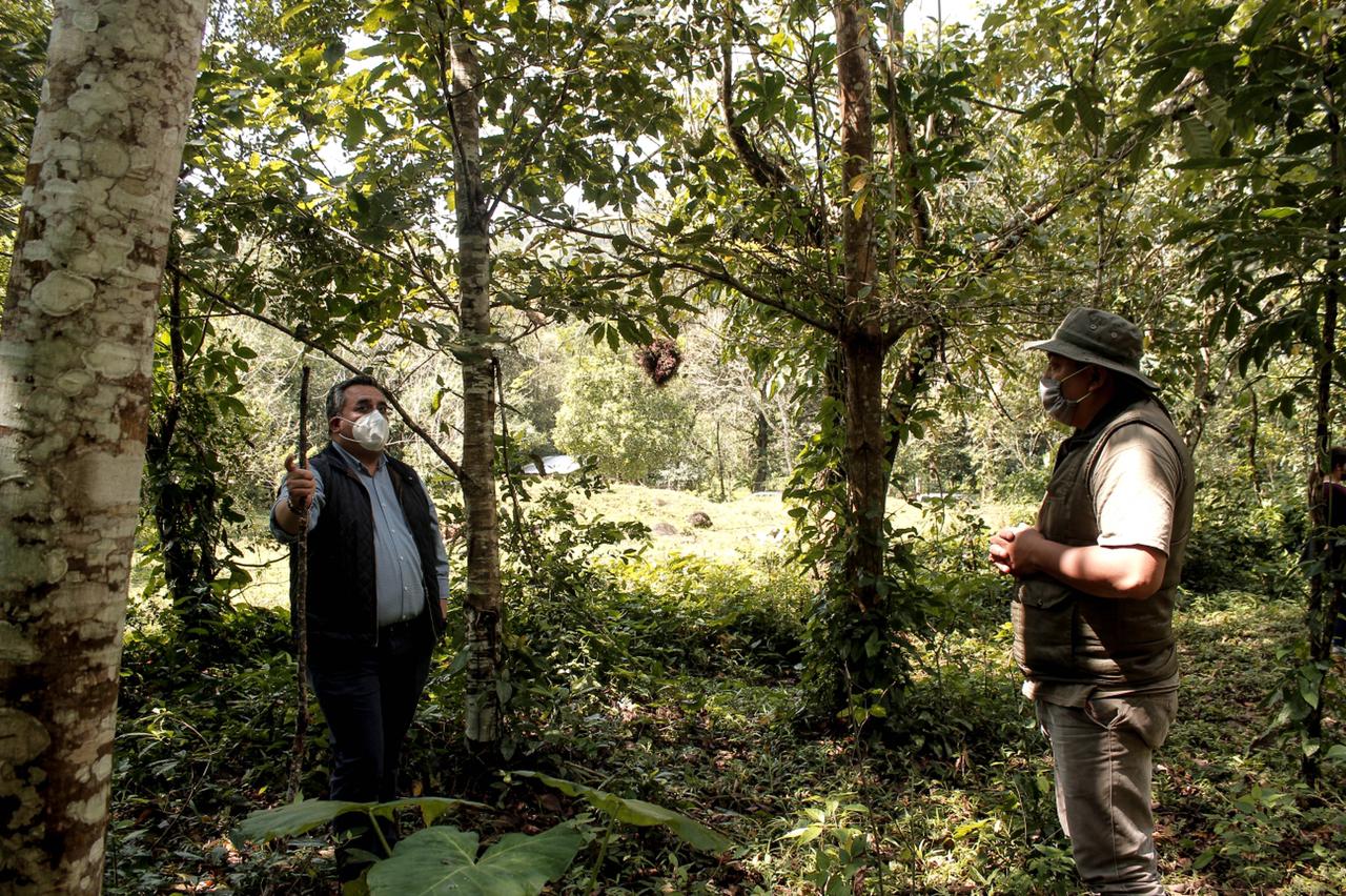 Acompañado por la gente del campo, el servidor público recorrió la zona forestal donde llevan a cabo recolección de semilla, llenado de bolsas, siembra de árboles frutales, especias y maderables, así como el desarrollo de especies nativas.