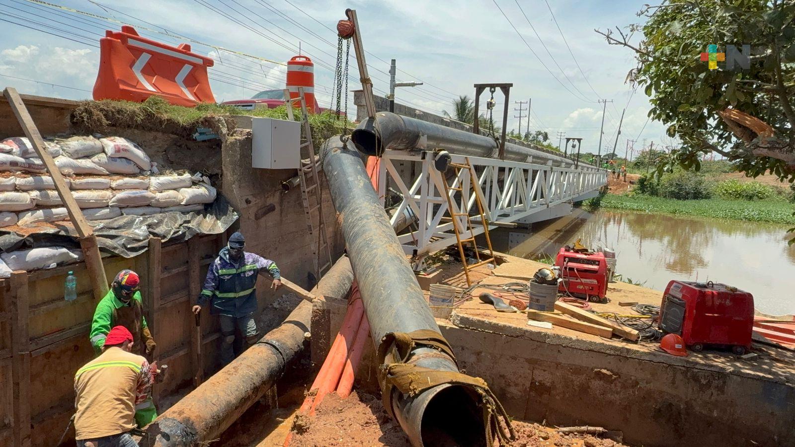 Coatzacoalcos, Ver.- Con la colocación de nuevas líneas de 18 y 21 pulgadas en el puente Calzadas II se hará más eficiente el servicio de agua potable para Coatzacoalcos.