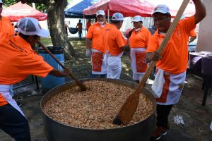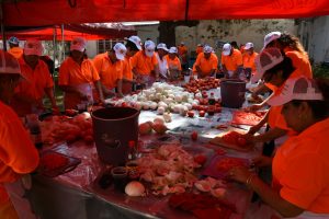 Restauranteros del municipio colaboraron en la preparación de los cien metros de platillo que se repartieron entre los asistentes al evento.