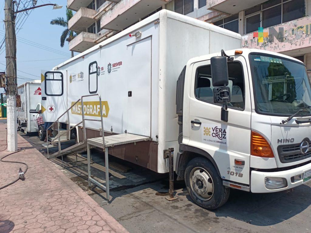 Dijo que el principal servicio que están brindando en esta semana de la salud son las mastografías. Aseguró que este estudio es muy caro, sin embargo, todo el equipo es enviado por el Gobierno del estado de Veracruz para realizar los estudios de manera gratuita. A mujeres a partir de los 40 años hasta los 79 años de edad.