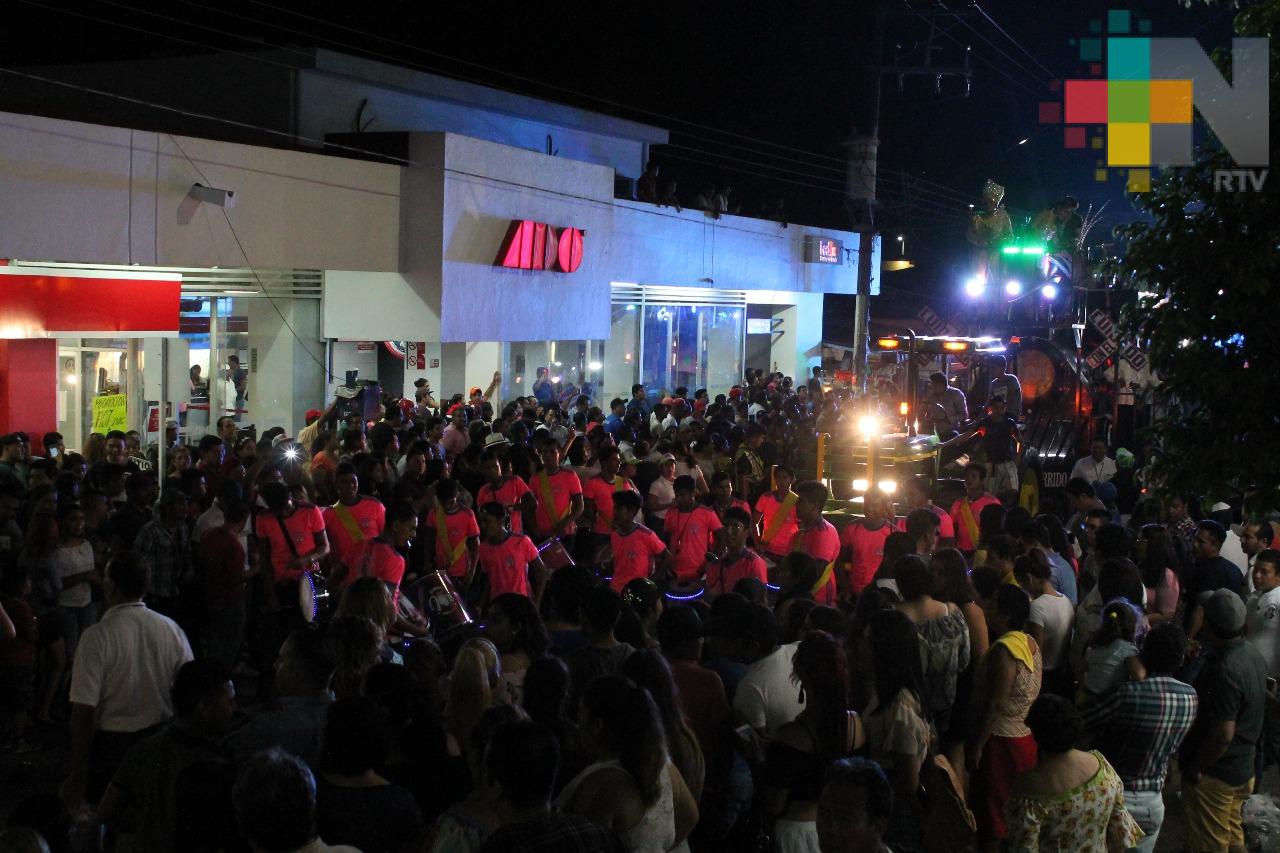 Familias de esta ciudad y de municipios vecinos tanto de Veracruz como de Oaxaca disfrutaron por más de cuatro horas del desfile con la participación de 16 carros alegóricos y el mismo número de comparsas.