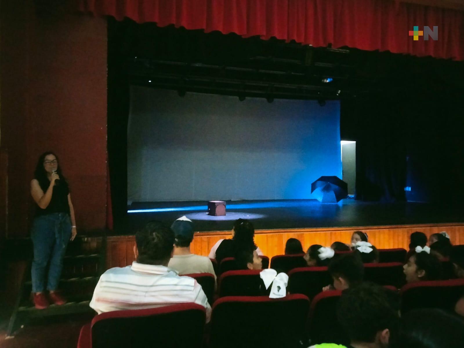 La función se realizó este martes en el teatro J. J. Herrera con el objetivo de interesar en las artes escénicas a niñas y niños de preescolar y primaria, explicó Tania Hernández Solís, de Inventario Laboratorio Escénico Objetual.
