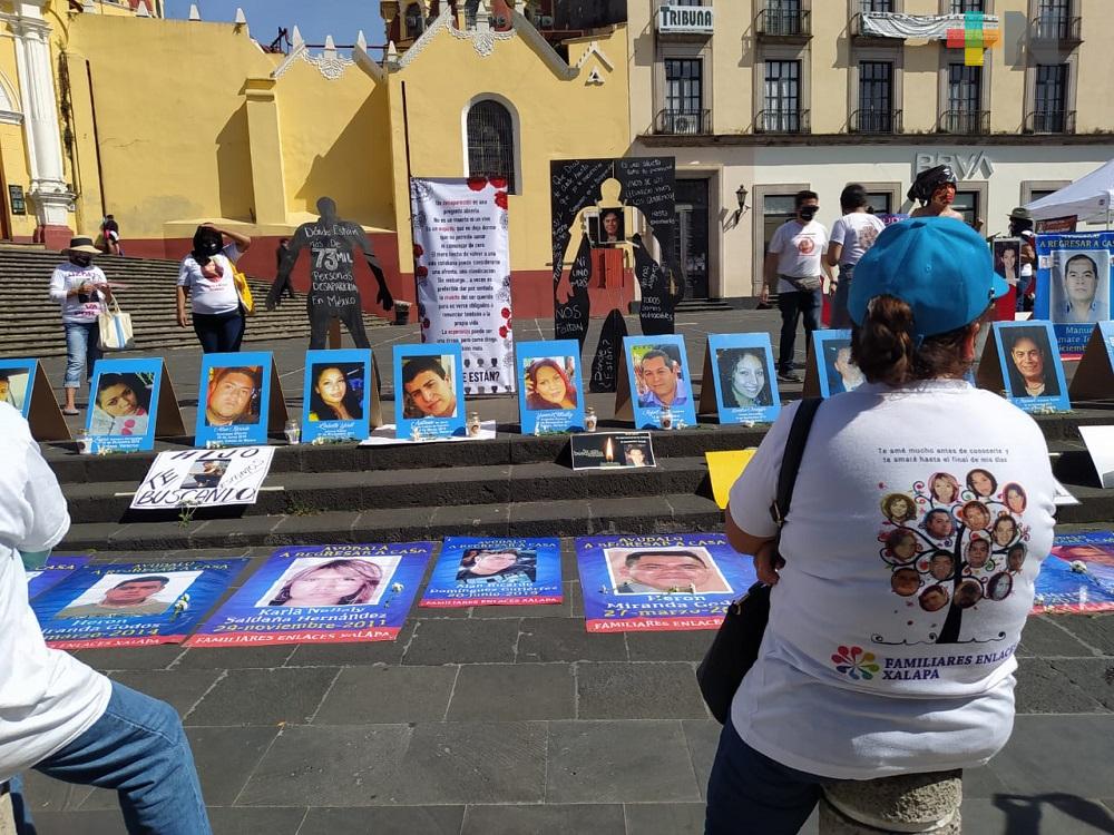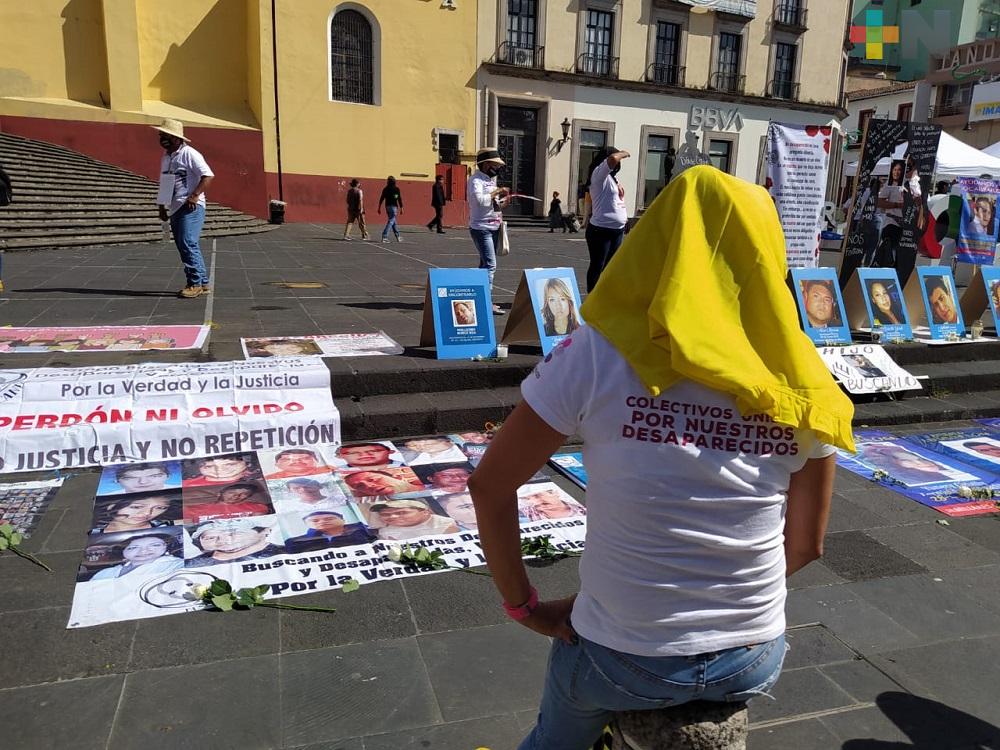 Xalapa, Ver.- Integrantes de Colectivos Unidos por Nuestros Desaparecidos, se manifestaron en la plaza Lerdo con motivo del Día Internacional de las Víctimas de las Desapariciones Forzadas, para exigir a las autoridades avances en las investigaciones y localización de sus familiares.