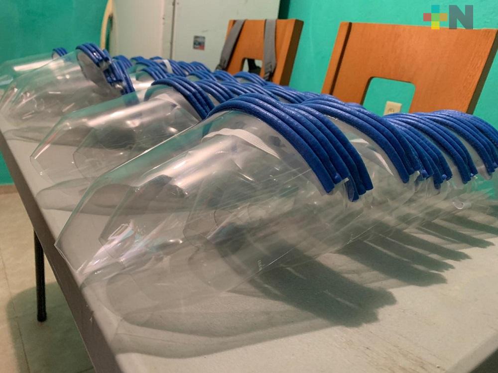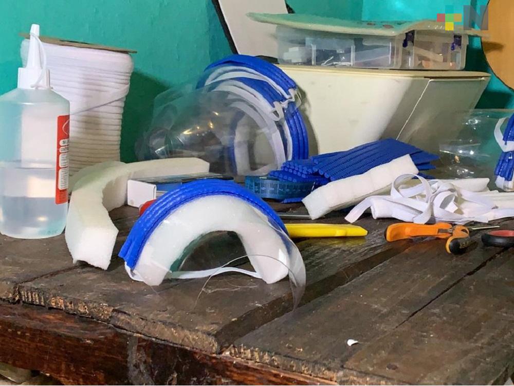 Con material reciclado elaboran caretas para donar a médicos de Coatzacoalcos