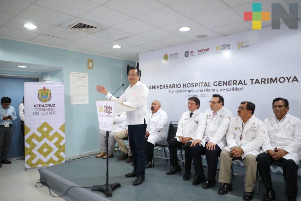 El Hospital General Tarimoya se ha distinguido por la atención oportuna e inmediata que brinda, con 250 mil consultas en Urgencias, 37 mil mujeres hospitalizadas y 36 mil partos, lo que equivale a 2 mil 400 nacimientos por año; además de 27 mil 802 intervenciones quirúrgicas y 135 mil consultas en área de Consulta Externa en las diferentes especialidades.