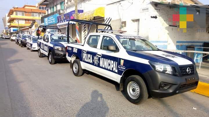 San Rafael, Ver.- Con el objetivo de reforzar la seguridad, autoridades municipales de San Rafael adquirieron ocho nuevos vehículos que fueron equipados para que funcionen como patrullas al servicio de la policía preventiva municipal.