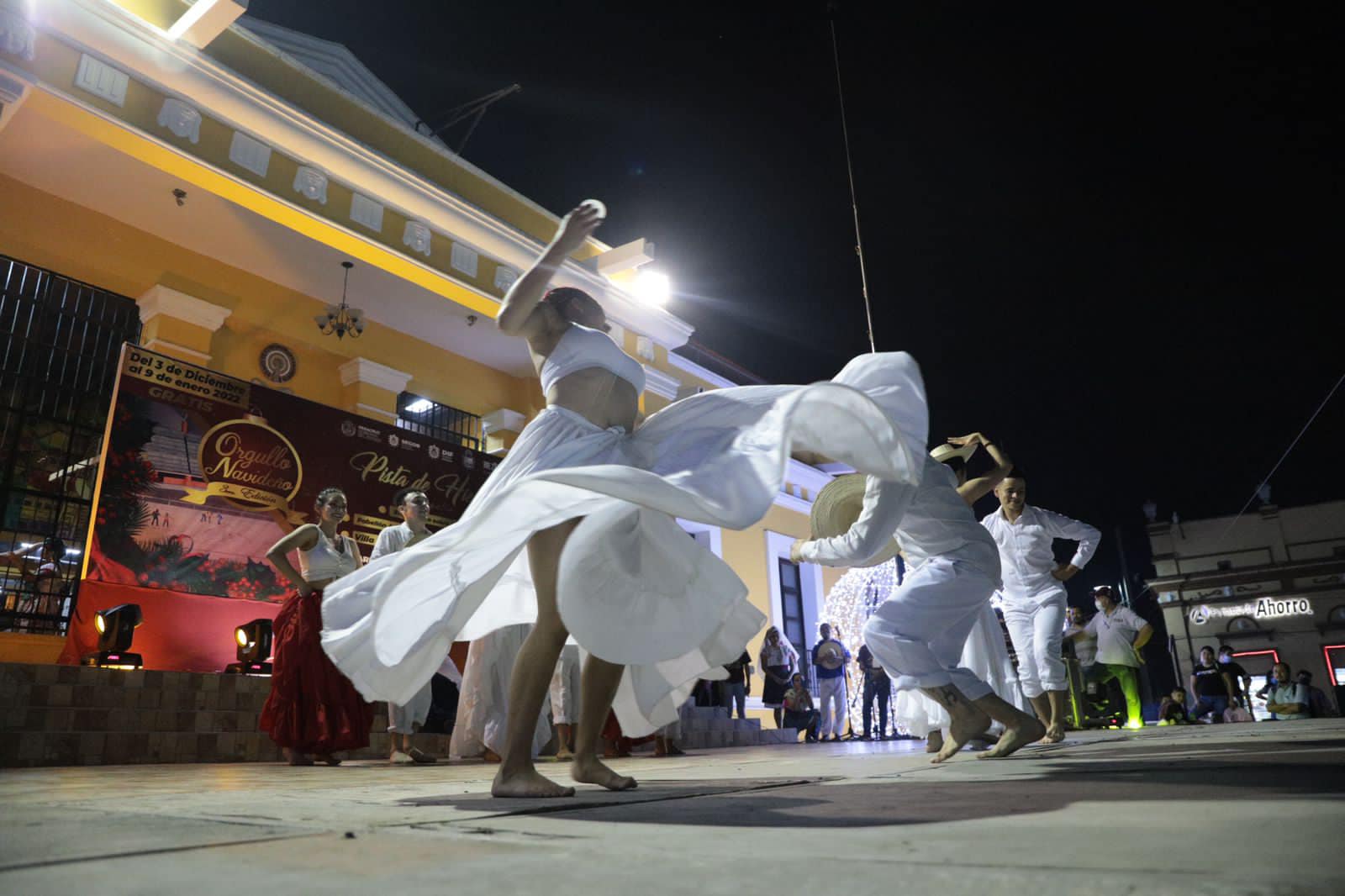 “Luego de la intensa gira de trabajo por el norte del estado, esta noche me detuve en Papantla, donde admiré el espectáculo artístico y cultural, y el patinaje sobre hielo que chicos y grandes practican en la pista que instalamos a un costado del mural de la cultura totonaca.