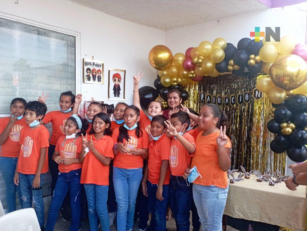En total fueron 28 los menores de edad que lograron concluir sus estudios de nivel básico, la clausura estuvo amenizada por cantos y música, además de la participación de un grupo de menores para conmemorar el día naranja contra la violencia hacia las mujeres.