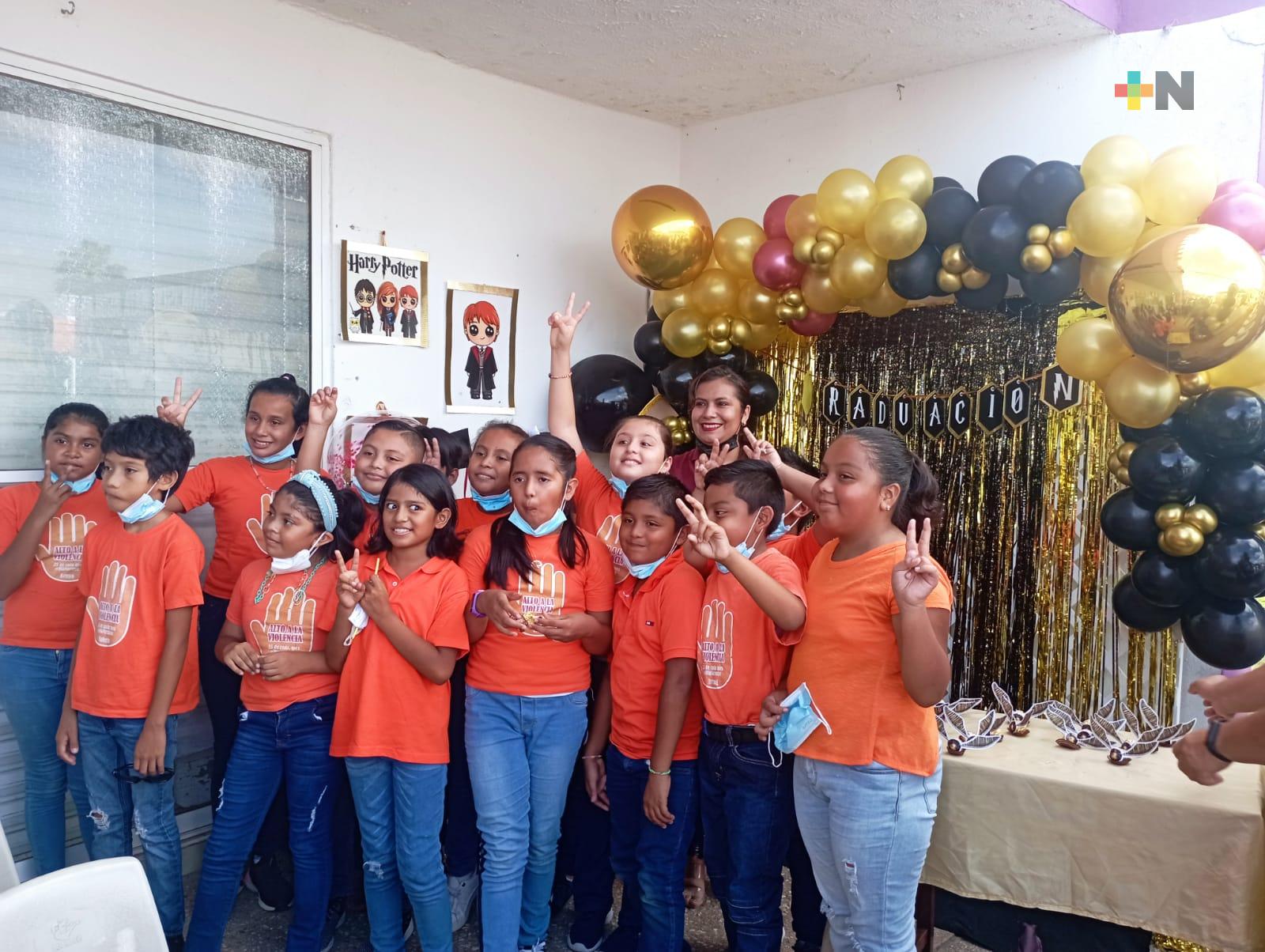 En total fueron 28 los menores de edad que lograron concluir sus estudios de nivel básico, la clausura estuvo amenizada por cantos y música, además de la participación de un grupo de menores para conmemorar el día naranja contra la violencia hacia las mujeres.