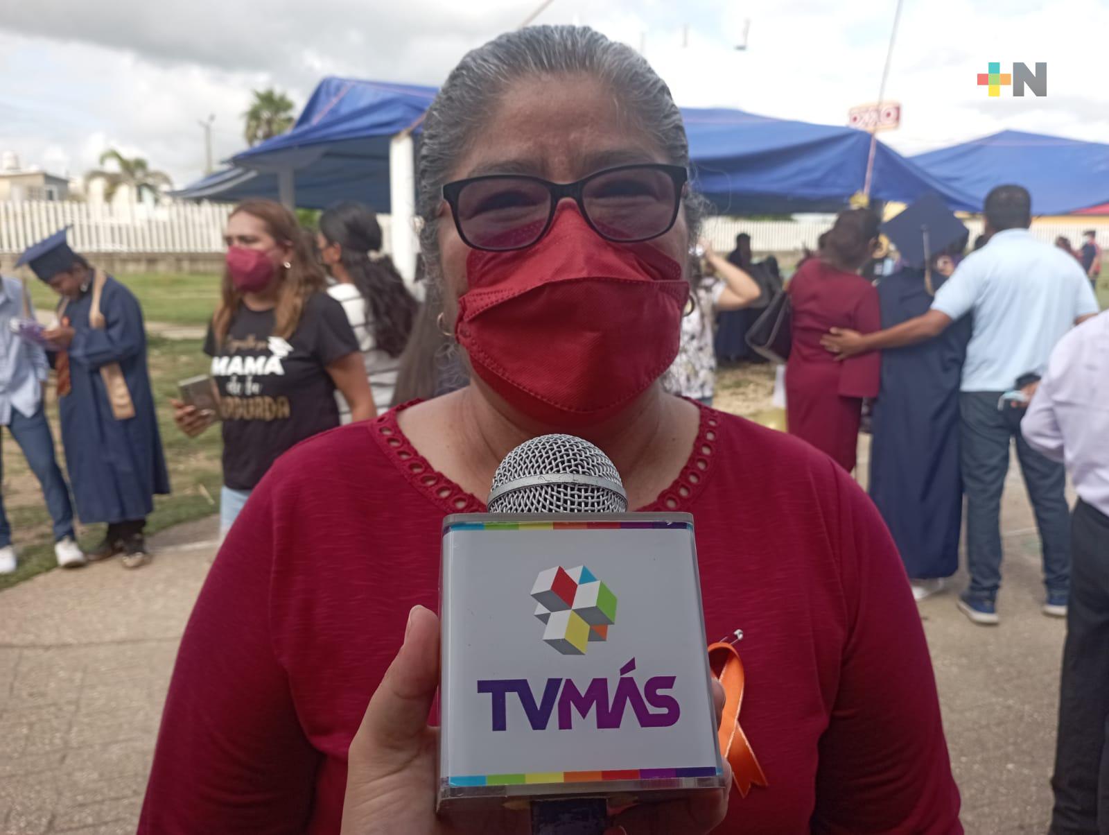 Al dirigir una palabras para los menores graduados la delegada de la Secretaría de Educación de Veracruz (SEV) delegación Zona Sur, Paola Cabrera Antonio, reconoció la importancia del apoyo de los padres de familia en la formación educativa de los niños y jóvenes y aseguró que la SEV seguirá trabajando para lograr forjar nuevas generaciones de jóvenes aprendices.