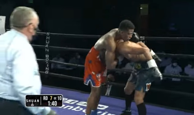 En el cuarto asalto de la pelea pactada a diez episodios, el boxeador veracruzano recuperó terreno en el combate, logrando conectar con certero recto de zurda en la mandíbula del púgil quisqueyano, a quien envió a la lona y luego de aplicarle el conteo de protección, se levantó y siguió la contienda.