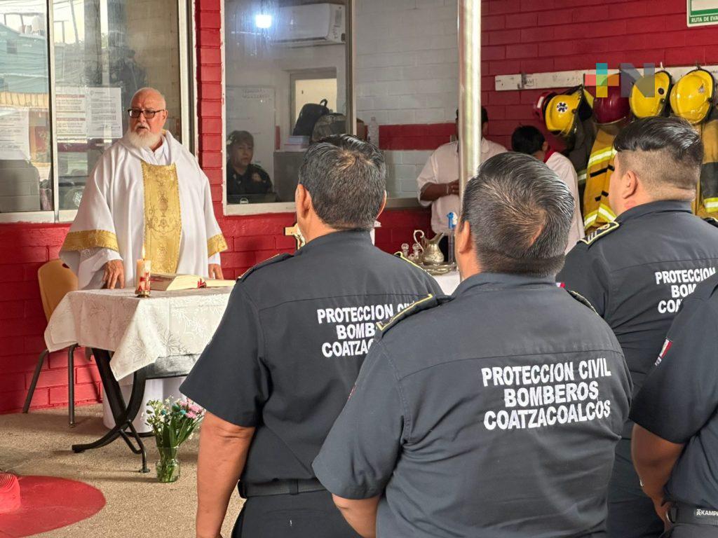 Con una misa, bomberos de Coatzacoalcos celebran su día