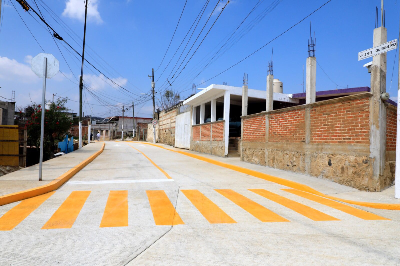 La pavimentación de la calle Vicente Guerrero comprende la construcción de guarniciones, banquetas, muro de contención y mil 521 metros cuadrados de concreto hidráulico, además de la rehabilitación del alcantarillado sanitario y el enmallado del campo deportivo, con lo que se beneficia a cerca de 2 mil 500 habitantes.