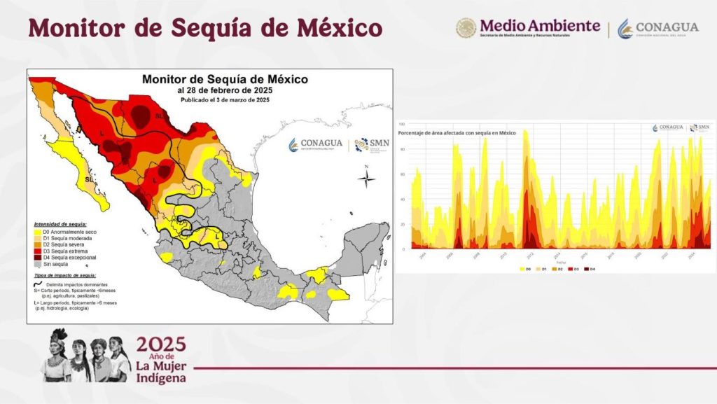 Dicha información se actualiza quincenalmente e incluye el conteo de municipios afectados por las diferentes categorías de sequía, tablas y gráficos de porcentaje de área afectada por sequía a nivel nacional, estatal, 13 regiones hidrológico-administrativas y 26 consejos de cuenca.