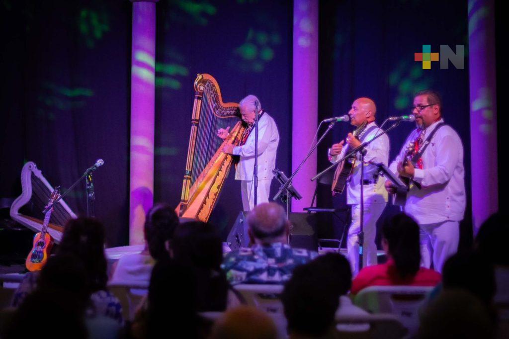 “tendremos el concierto de la Vieja Guardia del son jarocho. Ahí vienen todos los maestros del arpa Veracruzana. Prácticamente vienen de Veracruz, vienen de Tlacotalpan, vienen de Alto Lucero. En donde todos los maestros de la vieja guardia se van a reunir aquí en el teatro para brindar un atractivo concierto. Entre mencionar algunos viene el maestro Felipe Ochoa. El maestro Ex Alprieto, Delfino Guerrero, Nicolás Ventura, Juan Filobello, Rubén Vázquez. Y por supuesto el maestro Alberto de la Rosa va a estar aquí con nosotros”.
