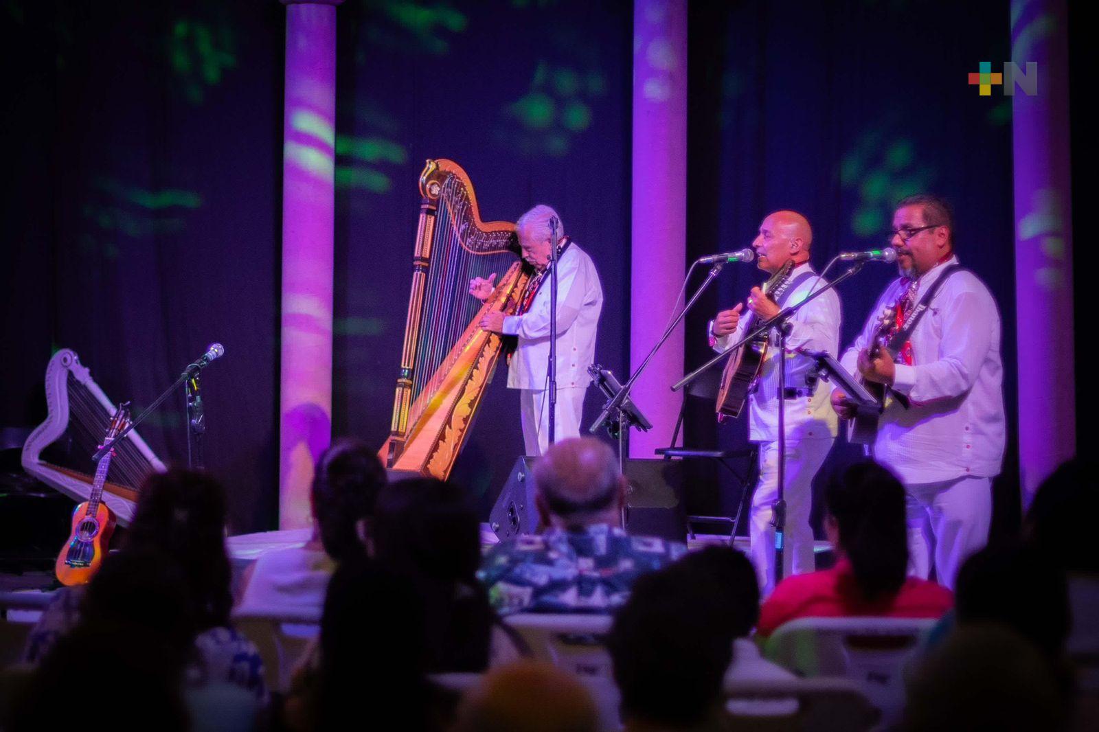 “tendremos el concierto de la Vieja Guardia del son jarocho. Ahí vienen todos los maestros del arpa Veracruzana. Prácticamente vienen de Veracruz, vienen de Tlacotalpan, vienen de Alto Lucero. En donde todos los maestros de la vieja guardia se van a reunir aquí en el teatro para brindar un atractivo concierto. Entre mencionar algunos viene el maestro Felipe Ochoa. El maestro Ex Alprieto, Delfino Guerrero, Nicolás Ventura, Juan Filobello, Rubén Vázquez. Y por supuesto el maestro Alberto de la Rosa va a estar aquí con nosotros”.
