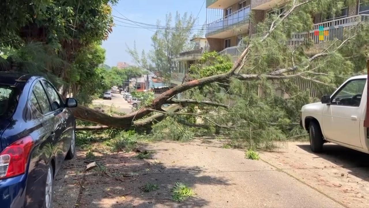 Coatzacoalcos, Ver.- Un tráiler de la empresa de paquetería Castores causó varios destrozos en el centro de Coatzacoalcos al tirar cables de energía y un árbol que a su vez cayó en un automóvil estacionado.