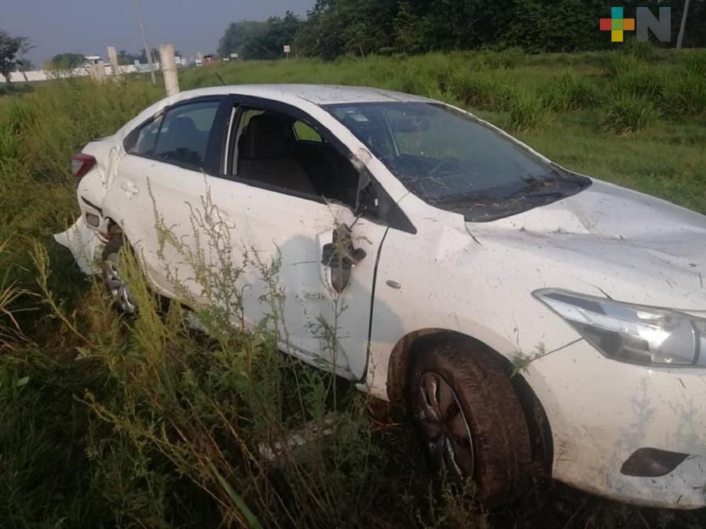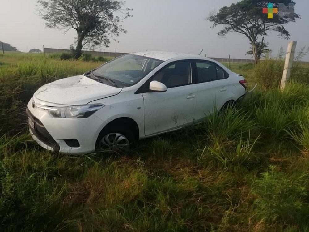 Conductor pierde control de su auto, termina fuera de la carretera Antigua a Minatitlán