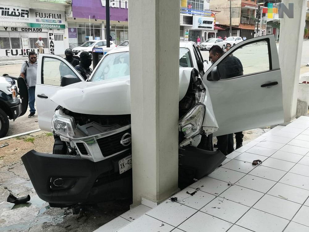Conductor pierde control de su camioneta, choca contra muro del ayuntamiento de Coatzacoalcos