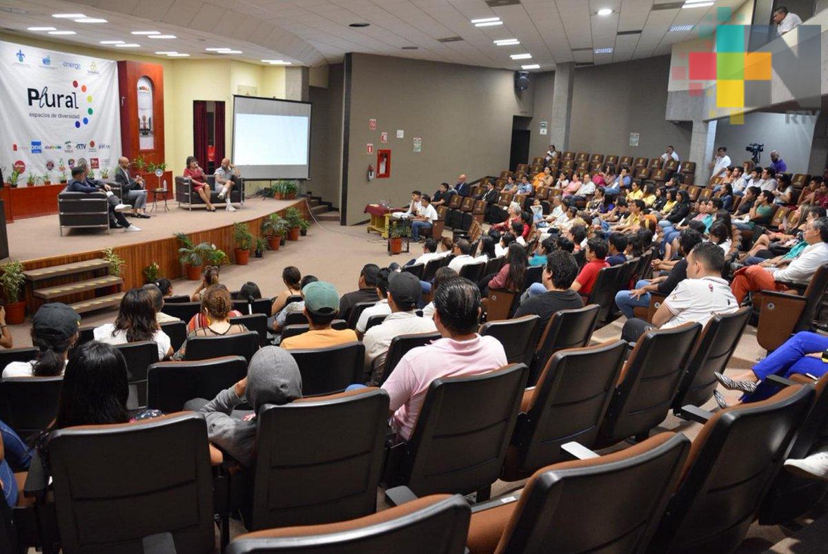 Xalapa, Ver.- Con la participación de la directora de comunicación en Ecosex, Silvia Susana Jácome García; el director de arte y fashion marketing en BRANDELIER, Johnny Carmona; el Fundador y líder de la red de empleados LGBT de American Express México, Fernando Velázquez Carasa y el Jefe de Marketing de Radio Televisión de Veracruz (RTV), David Campos Garcés, se llevó a cabo el foro “Plural, espacios de diversidad”, convocado por estudiantes de la Universidad Veracruzana.