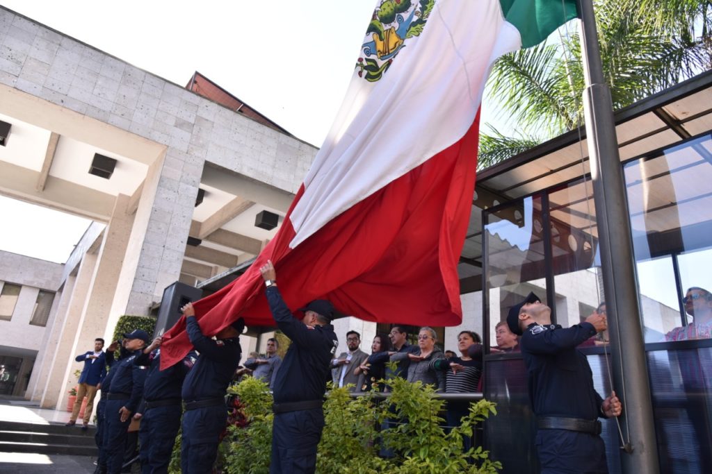 Participaron en el acto cívico el director general de la Editora de Gobierno, Israel Hernández Roldán, en representación del secretario de Gobierno, Eric Cisneros Burgos; la delegada administrativa en la Subsecretaría de Operaciones de la SSP, Elvia Ohemi García Hernández, y el director general de Asuntos Religiosos de la Secretaría de Gobierno, Sergio Ulises Montes Guzmán.