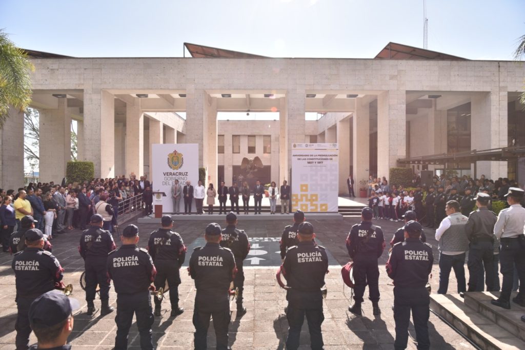 Xalapa, Ver.- La LXV Legislatura y el Gobierno del Estado de Veracruz llevaron a cabo, este 5 de febrero, en la explanada del Palacio Legislativo, el acto cívico para conmemorar el aniversario de la promulgación de las Constituciones de 1857 y 1917.