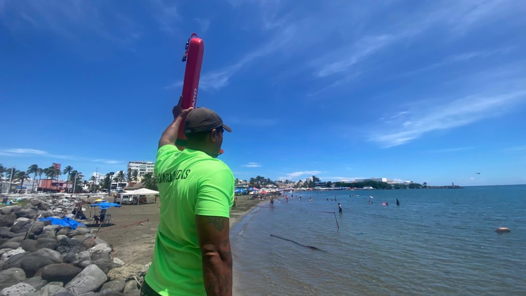 Veracruz, Ver.- Guardavidas alertan sobre la importancia de vigilar a menores y adultos mayores en playas para evitar accidentes.