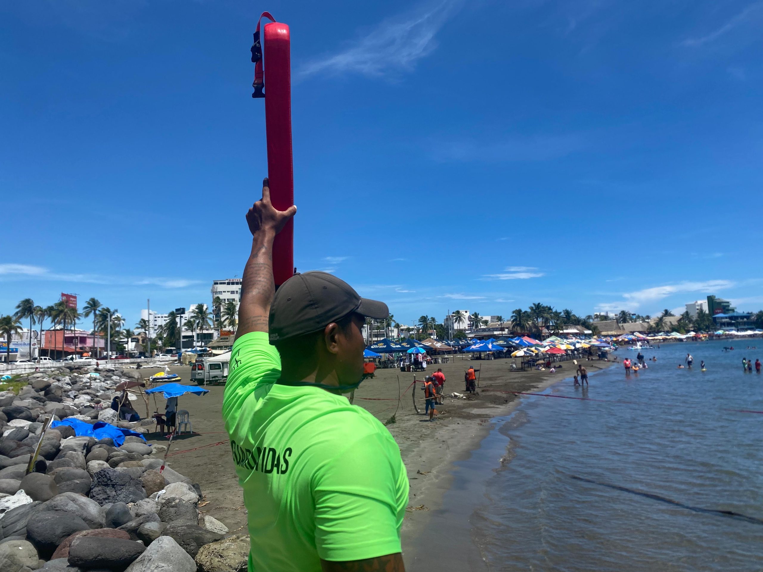Veracruz, Ver.- Guardavidas alertan sobre la importancia de vigilar a menores y adultos mayores en playas para evitar accidentes.
