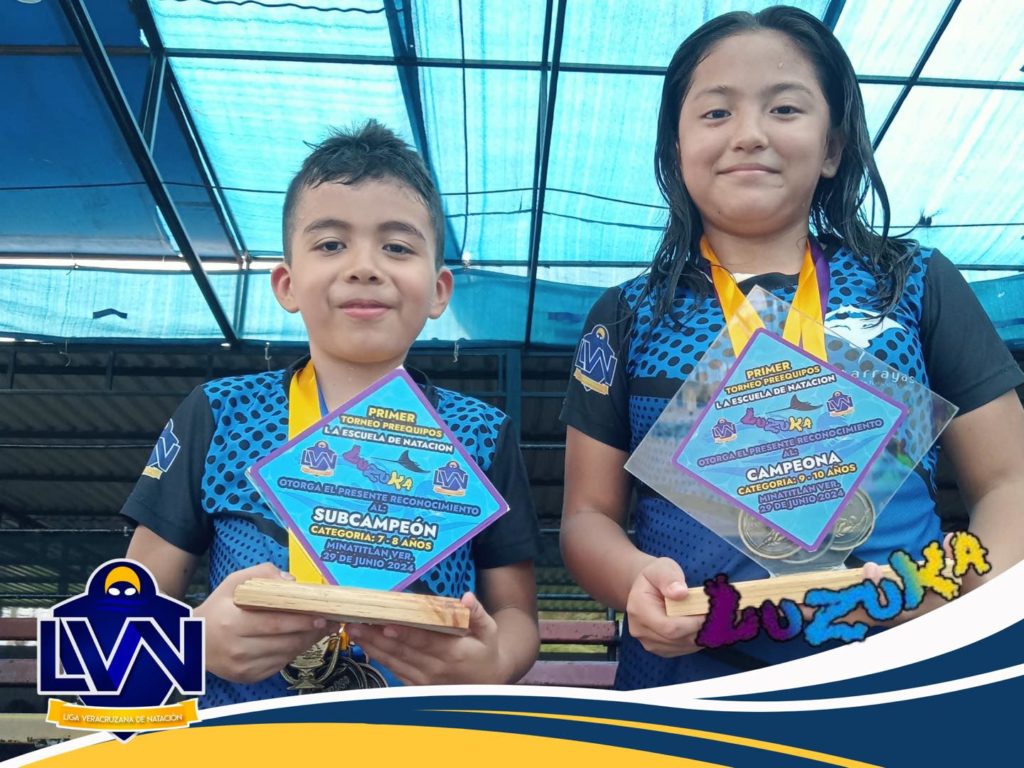 Categoría 8 años y menores: Ivanna Domínguez (Delfines de Nanchital) e Isabella Di María Villalobos (Delfines SIMAC). Emiliano Tepach (Brujos de San Andrés) y Mauricio Vargas (Mantarrayas IMSS Orizaba).
