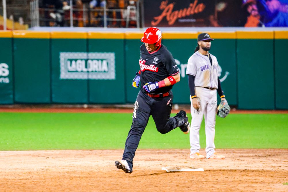 En la sexta entrada, El Águila apretó el juego por la vía del poder, con la cuenta de una bola, dos strikes, Juan Uriarte detonó jonrón solitario entre izquierdo y central, 6-5 la pizarra.