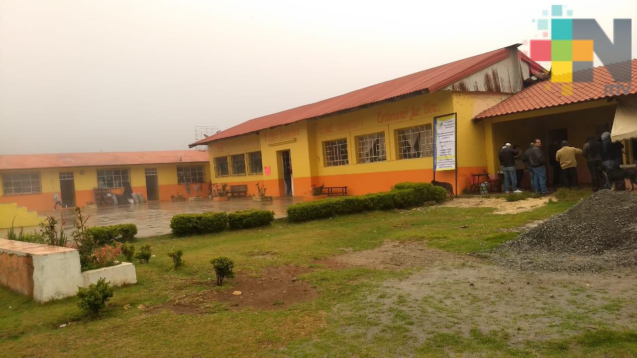 Huayacocotla, Ver.-Decenas de estudiantes; el director de la escuela, Sergio Izarza García; el presidente escolar, Héctor Martínez Rosales y padres de familia de la escuela primaria “Felipe Ángeles de Carbonero Jacales”, municipio de Huayacocotla estarán más seguros con la construcción de su barda perimetral.