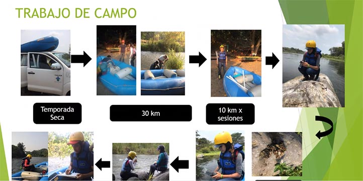 En cuanto a la medición de la abundancia relativa, la bióloga contabilizó la presencia de la nutria a través de un método indirecto de excretas y no por la captura del animal. Es decir, en su recorrido a lo largo de 30 kilómetros del río Actopan, detectó por medio de las excretas que las nutrias depositan sobre las rocas una abundancia de 0.36, lo cual indica que hay un animal cada tres kilómetros.