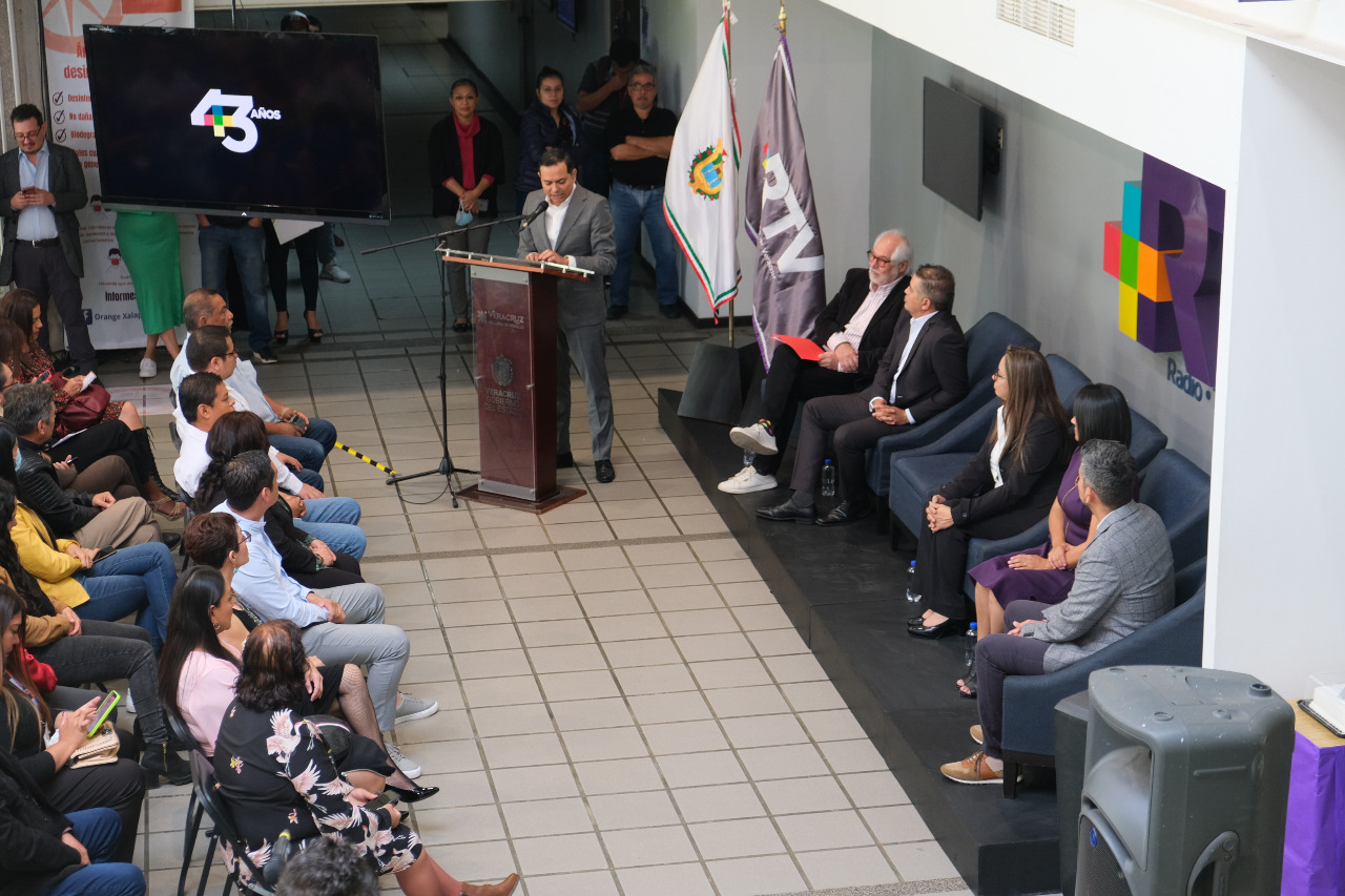 Xalapa, Ver.- En el marco del 43 aniversario de Radiotelevisión de Veracruz (RTV), el director general Víctor Hugo Cisneros Hernández destacó la importancia que tiene como sistema de comunicación estatal, trascendiendo en la sociedad, siendo plural e incluyente en la actual sociedad veracruzana.