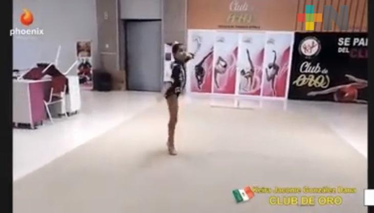 Boca del Río, Ver.- La gimnasta veracruzana de Club de Oro, Esthela Gamboa Navarro expresó su felicidad tras ganar medalla de oro, y campeonato obtenido en el evento denominado Rhytmic Gimnastics On Line “GymKids CUP” desarrollado virtualmente desde Bakú, Azerbaiyan.