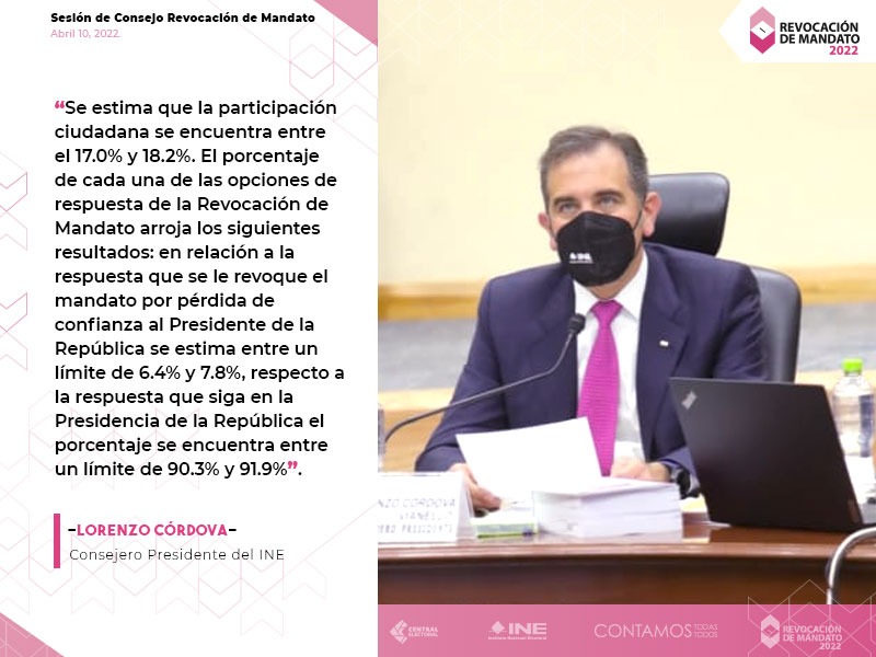 «Conteo rápido» estima participación del 17 y el 18.2% de votantes en consulta de Revocación de Mandato: INE