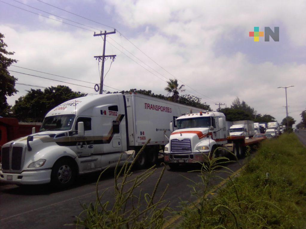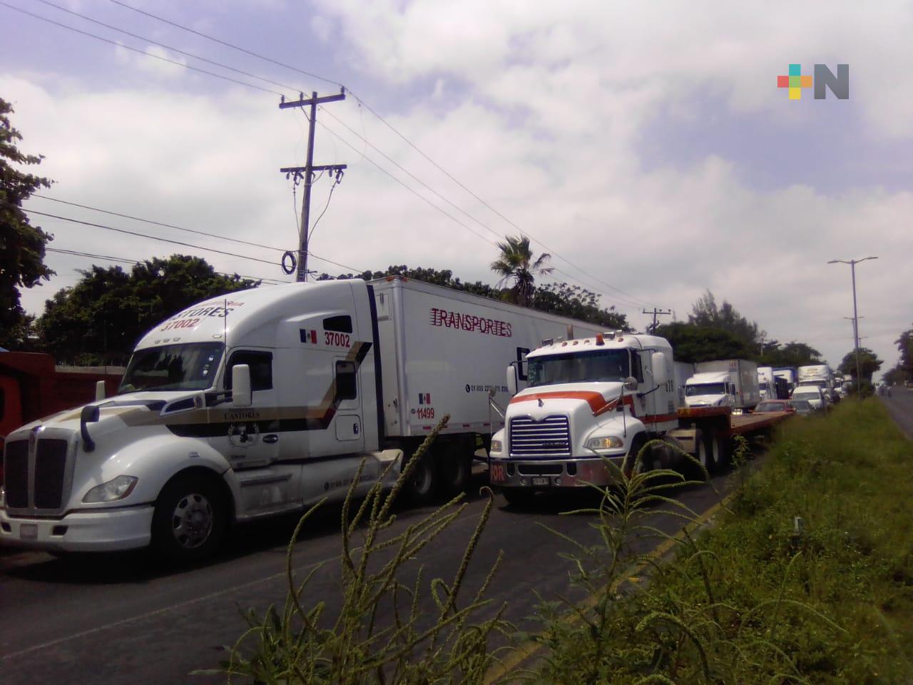 Veracruz, Ver.- Continúa bloqueada la circulación sobre la carretera federal Veracruz-Xalapa a la altura de la Estación Naval de «Las Bajadas».