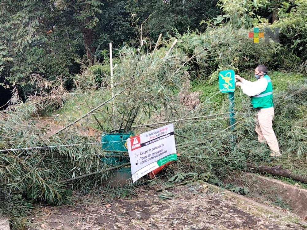 Xalapa, Ver.- Un deslave registrado desde hace dos semanas en el Parque Ecológico Macuiltépetl, en Xalapa, provocó que se desviara el paso de los corredores, en la ruta conocida como “vía larga”, a la altura de las antenas de la Comisión Federal de Electricidad (CFE).